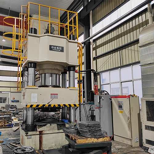 主机结构:1000吨四柱液压机的主机通常采用三梁四柱式结构,由上横梁、活动横梁(滑块)、下横梁和四根立柱组成。这种结构具有刚性好、精度高、结构紧凑和经济适用的特点。